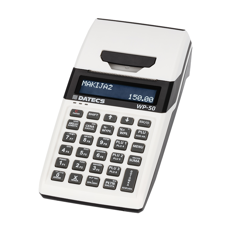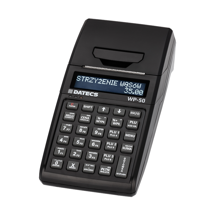Kasa fiskalna online DATECS WP-50 PLUS to urządzenie przystosowane do pracy mobilnej i stacjonarnej. Kasa wybierana przez fryzjerów, kosmetyczki, lekarzy, prawników, mechaników. Bogaty wybór funkcji dodatkowych kasa znajduje zastosowanie na parkingach, w wypożyczalniach do rozliczania usług czasowych, w gastronomii do wydruku zamówień czy rozliczania towarów akcyzowych. Można również wykorzystać wydruk zamówień do generowania biletów wstępu na festyny, koncerty czy atrakcje oferowane w parkach rozrywki.