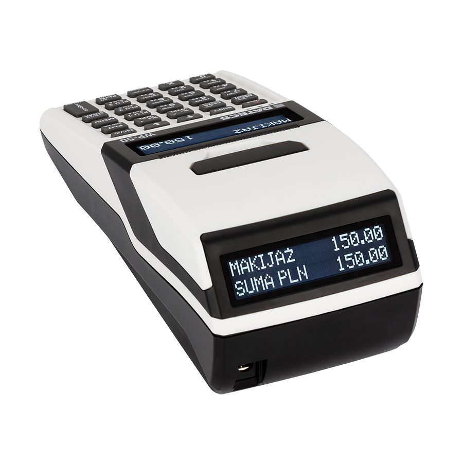 Wydajna bateria litowo-polimerowa zapewnia swobodne użytkowanie kasy w terenie. Dzięki zastosowanemu systemowi wymiany papieru typu „WRZUĆ I PRACUJ” obsługa kasy jest nie skomplikowana. Gumowany spód obudowy zapewnia pewny uchwyt kasy.