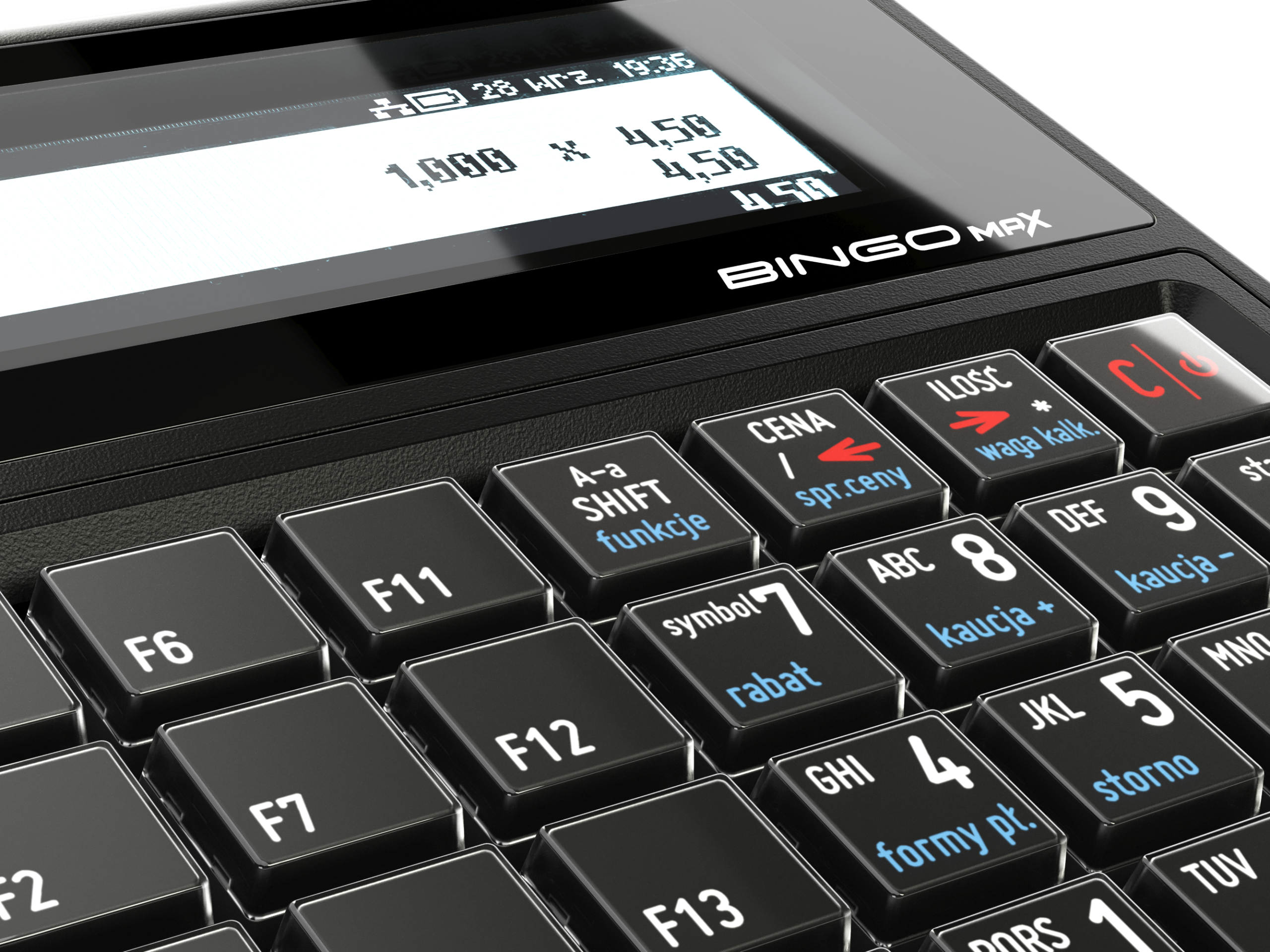 Bingo Max2 posiada wytrzymałą i wygodną klawiaturę mechaniczną z możliwością zaprogramowania 42 klawiszy skrótu do najważniejszych funkcji jak: